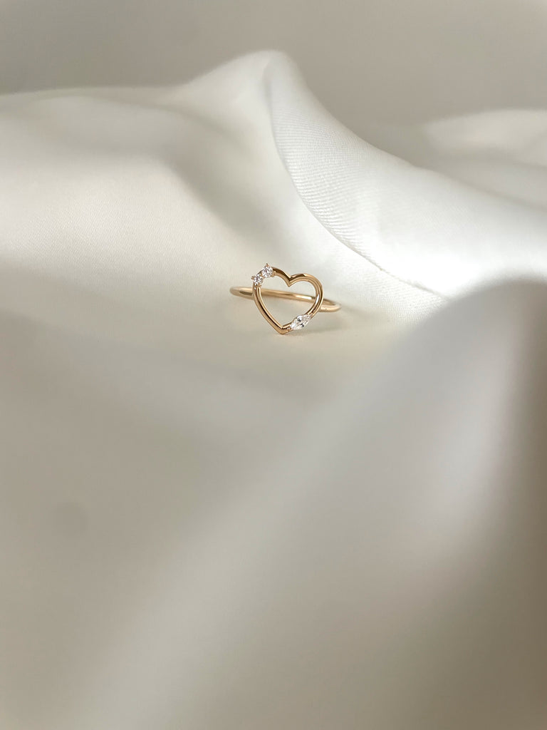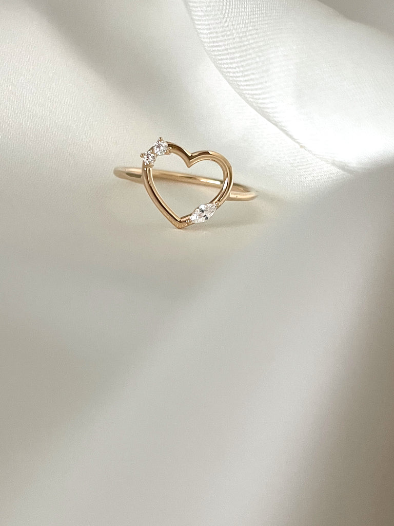 Une bague cœur délicate, ornée de trois oxydes de zirconium blancs qui captent la lumière avec subtilité.