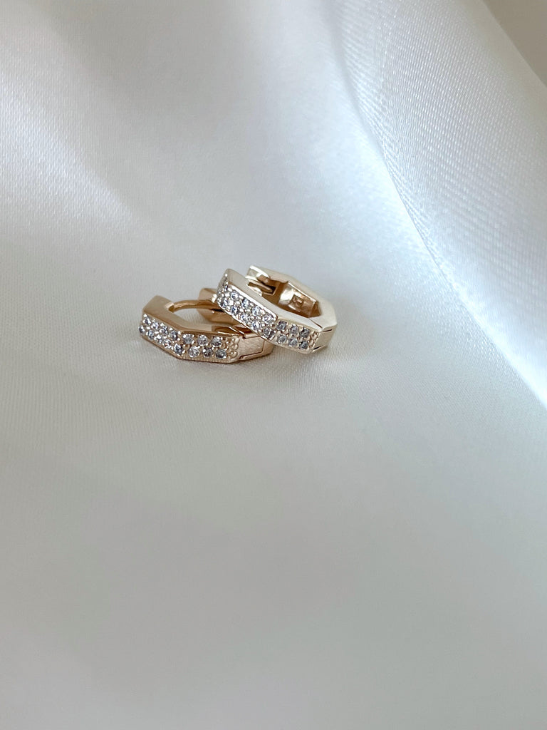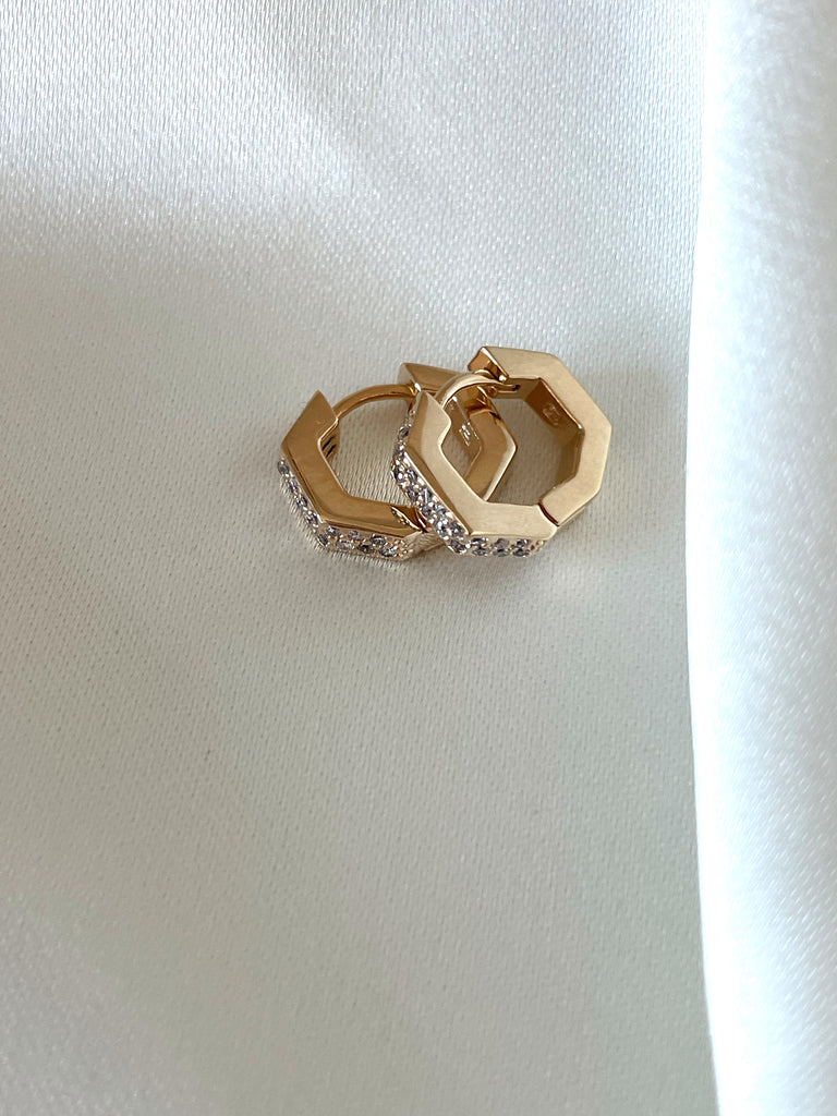 Des créoles à la forme subtilement octogonale, serties d’une ligne d’oxydes de zirconium scintillants
