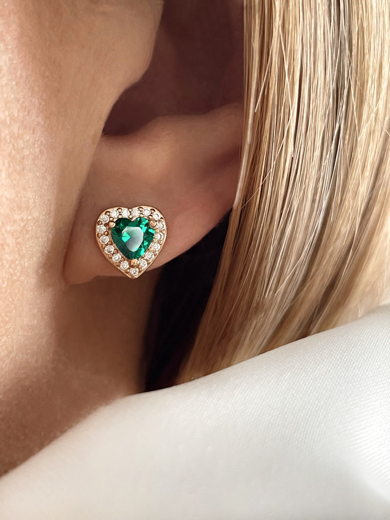 Un cœur vert émeraude, symbole d’un amour profond et sincère. Entouré d’un halo de zircon.